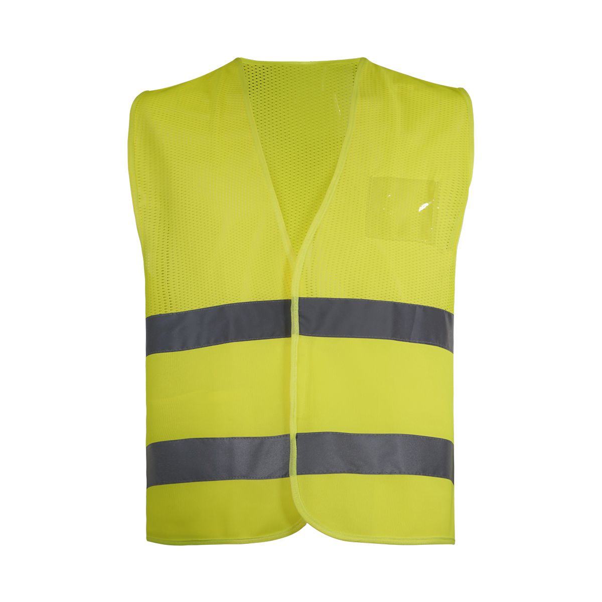 Chaleco Alta Visibilidad con compartimento Porta-Tarjetas. Cierre velcro al tono. 2 bandas reflectantes 25 ciclos. Tarjetero en pecho izquierdo.