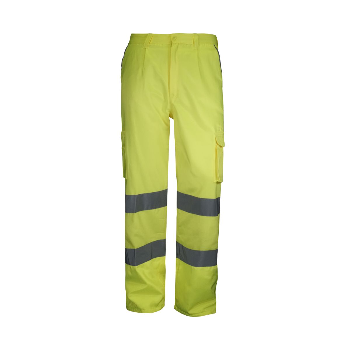 Pantalón multibolsillos Alta Visibilidad. Dispone de bolsillos franceses en costados con presillas anti-desgarro para una mayor duración del pantalón, además dispone de bolsillos traseros con velcro y vivo reflectante, bolsillo de velcro y fuelle en lateral derecho, y bolsillo portaobjetos con velcro en lateral izquierdo.