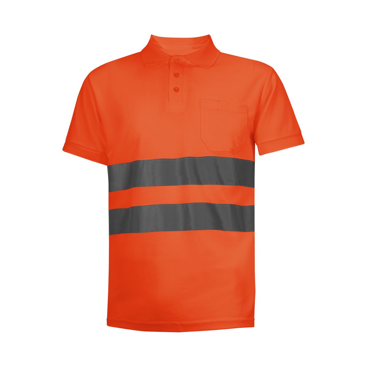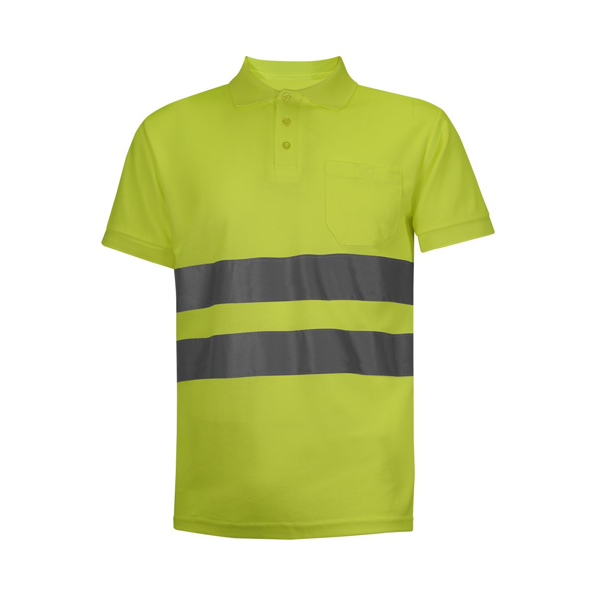 Polo piqué especial de alta visibilidad. Con bolsillo de parche delantero izquierdo con cierre de velcro. Tapeta con 3 botones. Manga con puño y cuello de canalé. Doble costura en hombros y sisa. Abertura lateral.