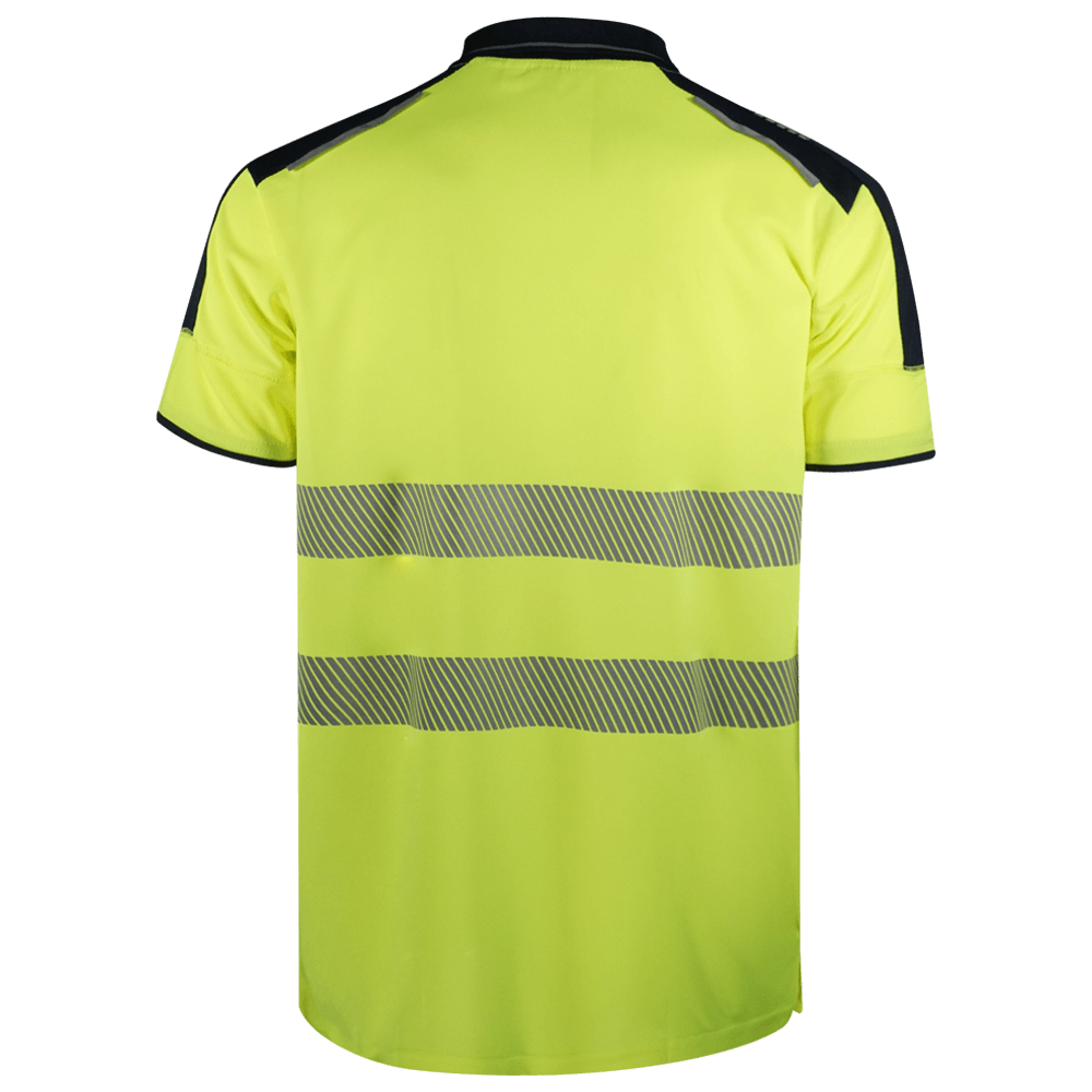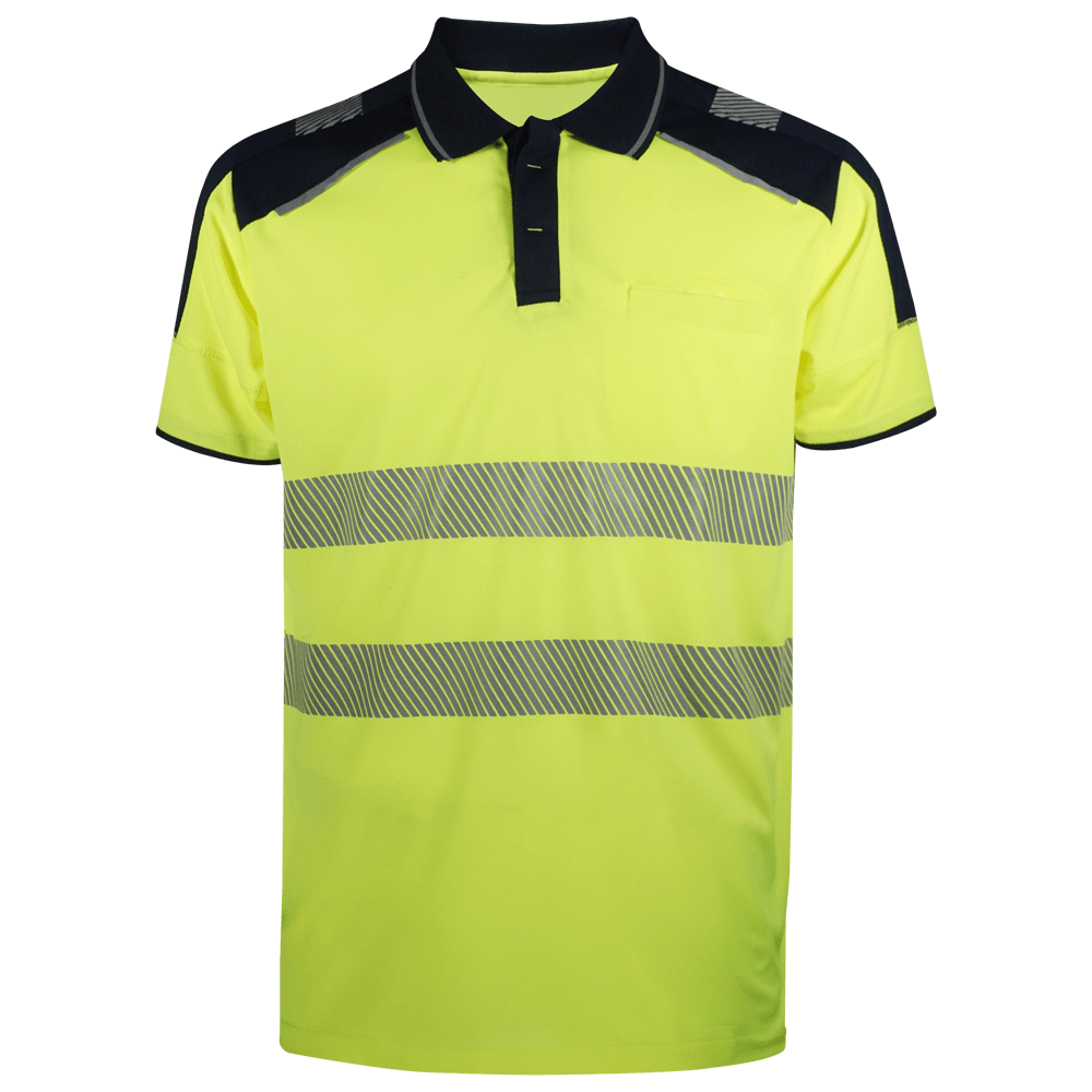 Polo de poliéster reciclado combinado de alta visibilidad.